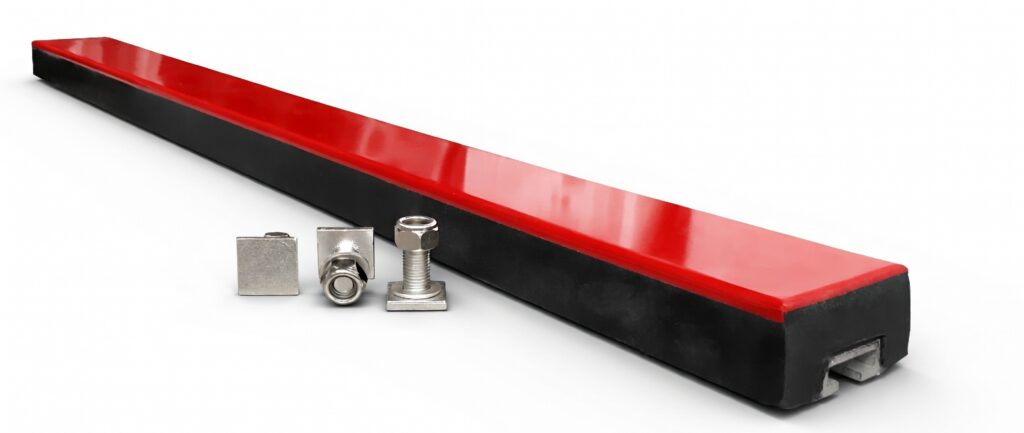 💡 Belangrijk: Direct contact tussen rubber en rubber veroorzaakt hoge wrijving en kan de transportband beschadigen. Daarom zijn impactbars voorzien van een slijtvaste kunststof toplaag.
